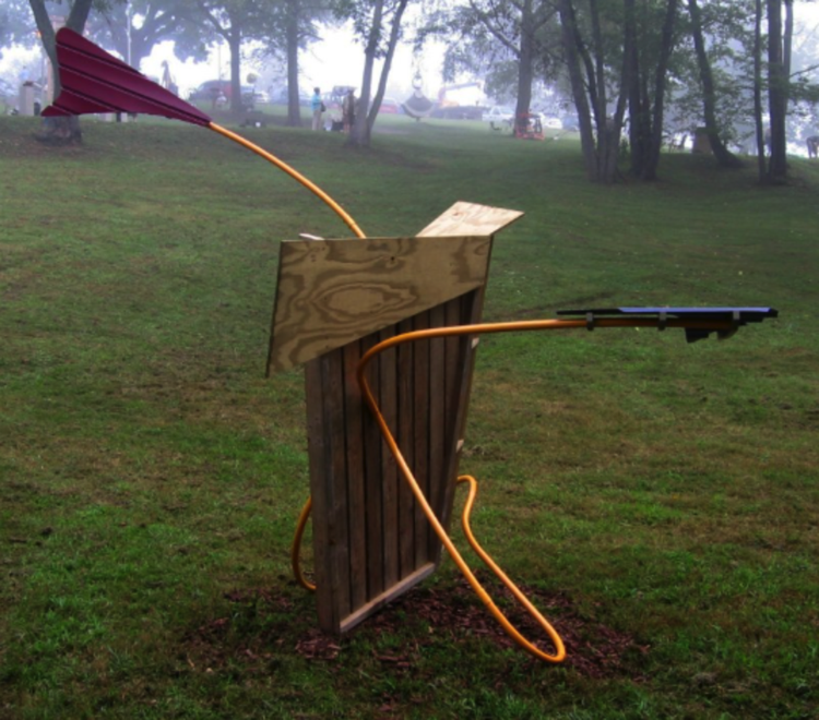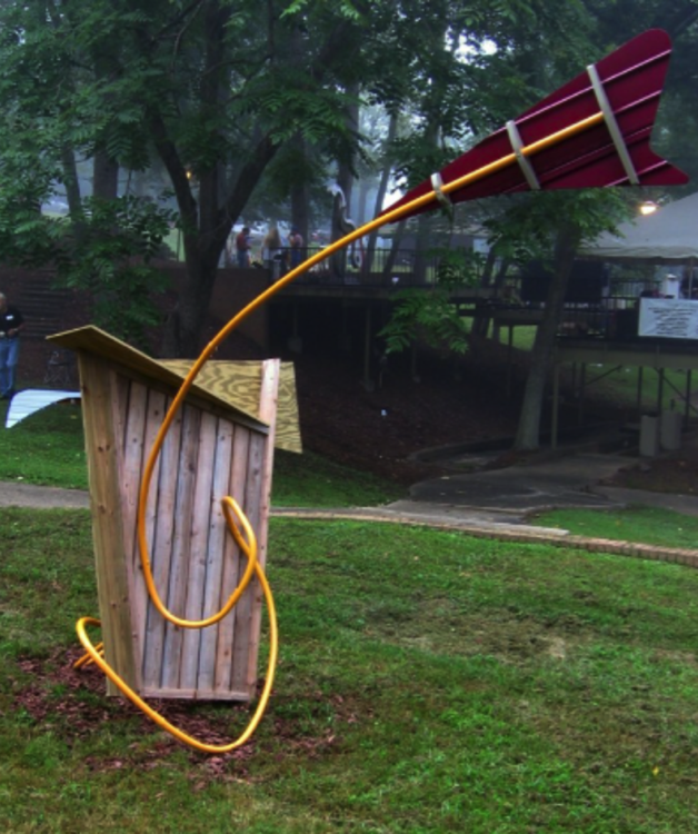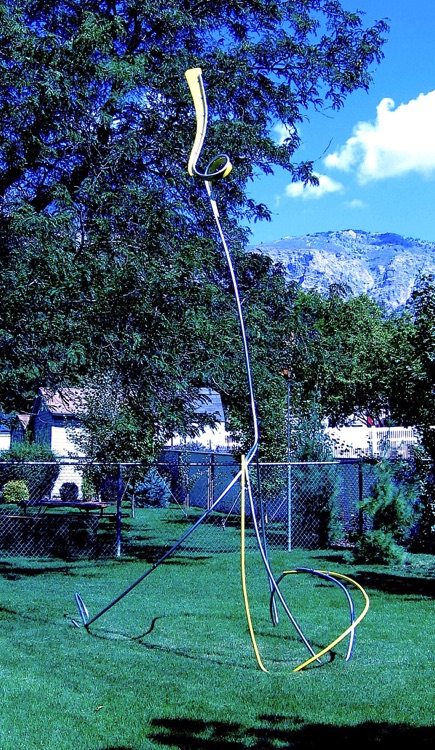 Up . . . & About, designed for exterior display, is shown here at J. E. Broyhill Park in Lenoir, NC as part of the 24th Annual Sculpture Celebration in 2009.